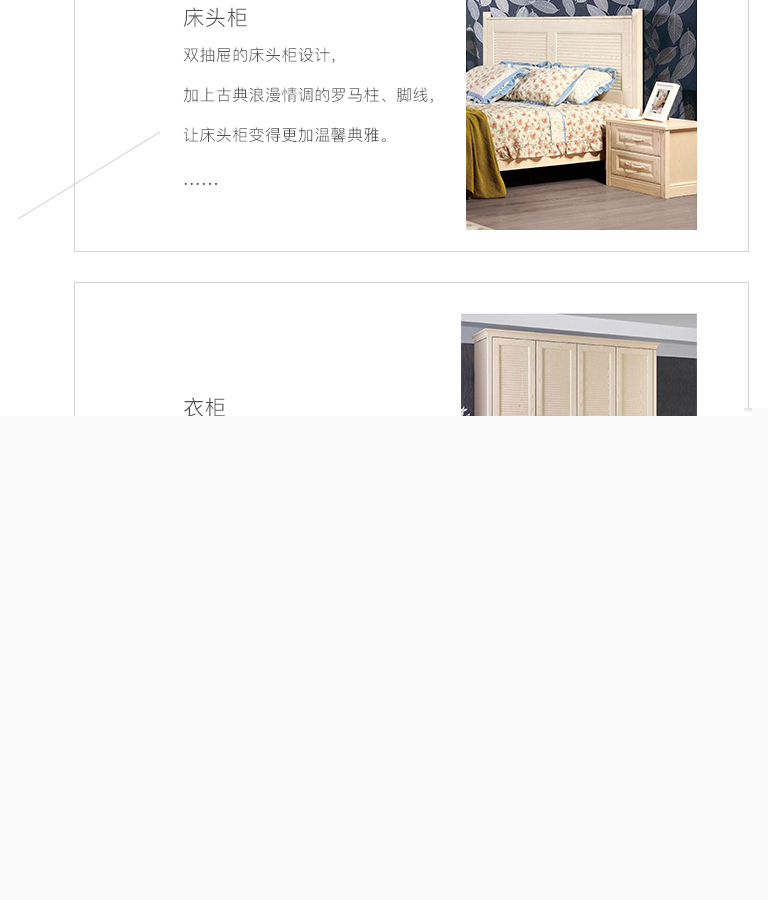 | 規格 | 單人床:1600*2110*1200mm 床墊:1500*2000*200mm 床頭柜:558*401*448mm 衣柜:1914*633*2375mm |